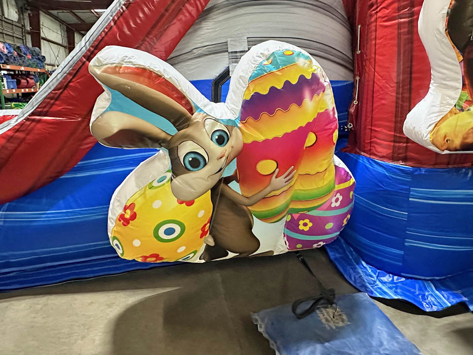 Hop into springtime fun with our Easter Kit on the Color Wave Combo! This bright, festive combo brings Easter celebrations to life with cheerful seasonal graphics while delivering the same high-energy fun families love. Featuring a spacious bounce area and an exciting dual-lane slide, this combo can be used wet or dry, making it perfect for Easter events in any weather.