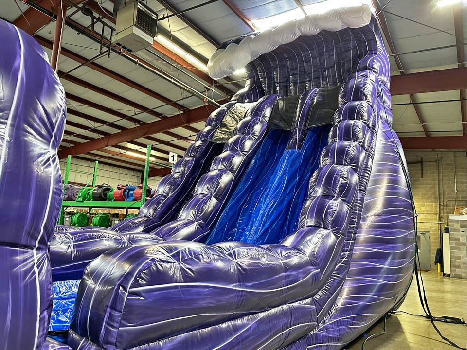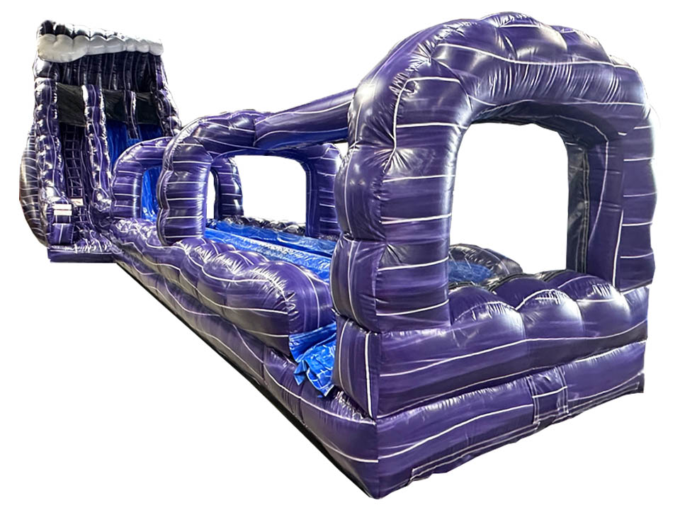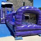Our Purple Crush Dual Lane Water Slide features a radical sliding angle that’s sure to get the adrenaline pumping as riders scream down for 22 feet! At the bottom, riders continue down 31 feet of additional sliding fun before exiting this mind blowing ride. This unit is ideal for schools, churches, summer camps and more. Kid, teenagers and adults alike will love this ride! *This can only be used as a water slide.*