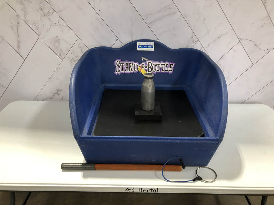 Use the pole to guide the ring around the neck of a laid-down bottle to stand it up.
