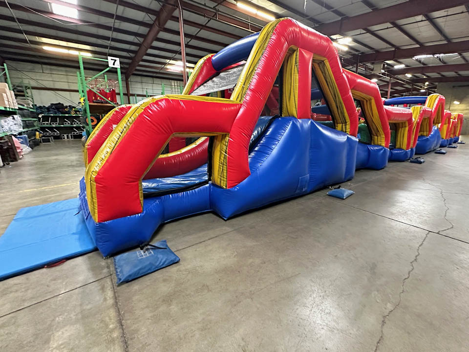 The 75-foot Piece A + B + D combination delivers a long, high-energy obstacle experience built for endurance, competition, and nonstop fun. Piece A starts racers off with five different interactive obstacles that test agility, balance, and coordination from the very first step.