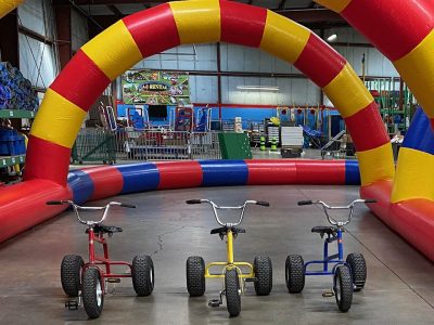 Finally tricycles for teens and adults! For the kid in all of us. Use cones to set up your own customized course. Who can cross the finish line first on their over-sized tricycle? Rental includes with (3) trikes.